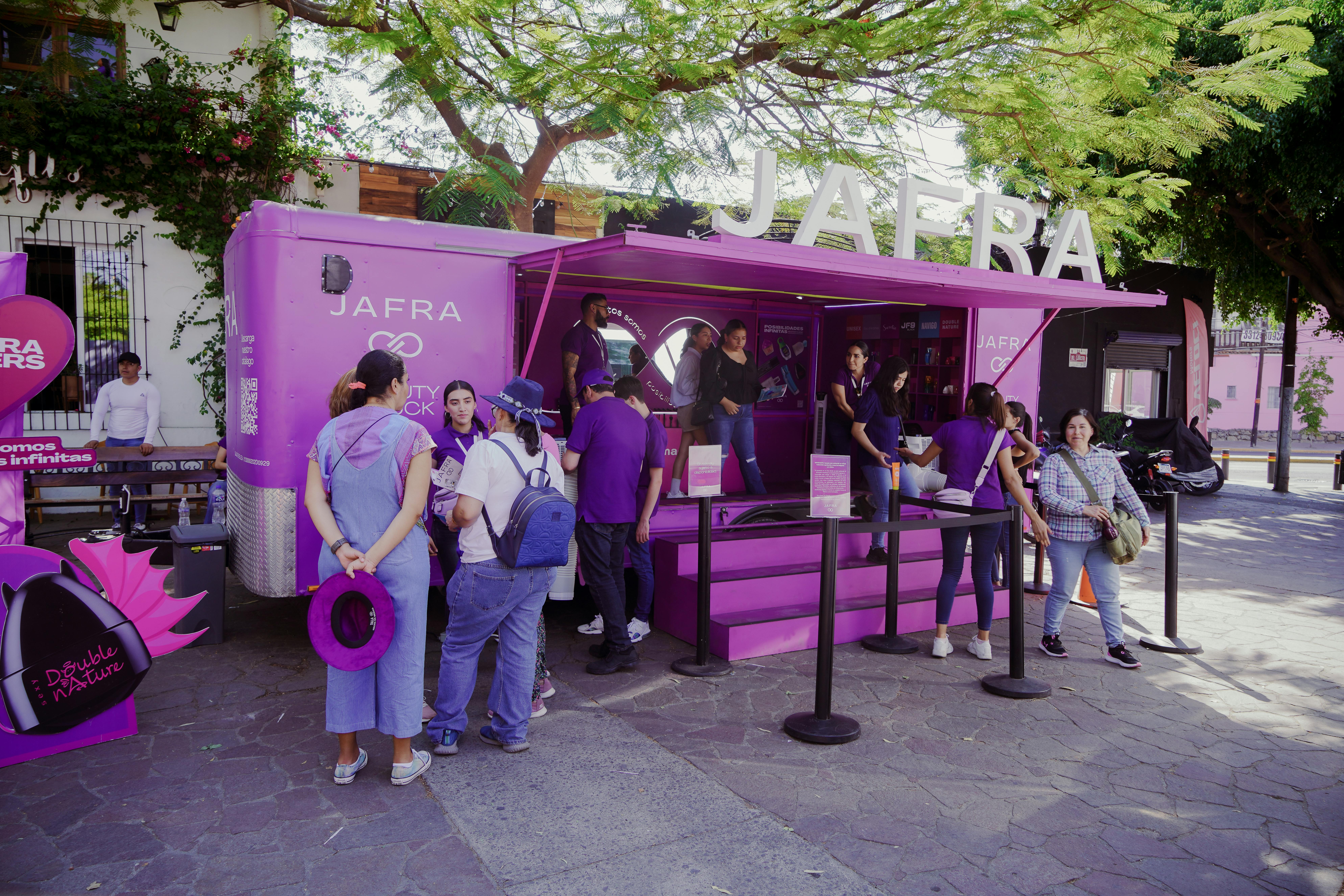 Con Jafra creamos Beauty Truck, un showroom itinerante que recorrió CDMX, Monterrey y Guadalajara, instalándose en parques y universidades para acercar la marca a nuevas audiencias. A través de una mini encuesta, los asistentes descubrieron productos y rutinas personalizadas según su edad, tipo de piel y necesidades, probando distintas categorías y recibiendo muestras de producto gratis. La experiencia se completaba en un photo opp para compartir en redes sociales las Posibilidades Infinitas de la marca.