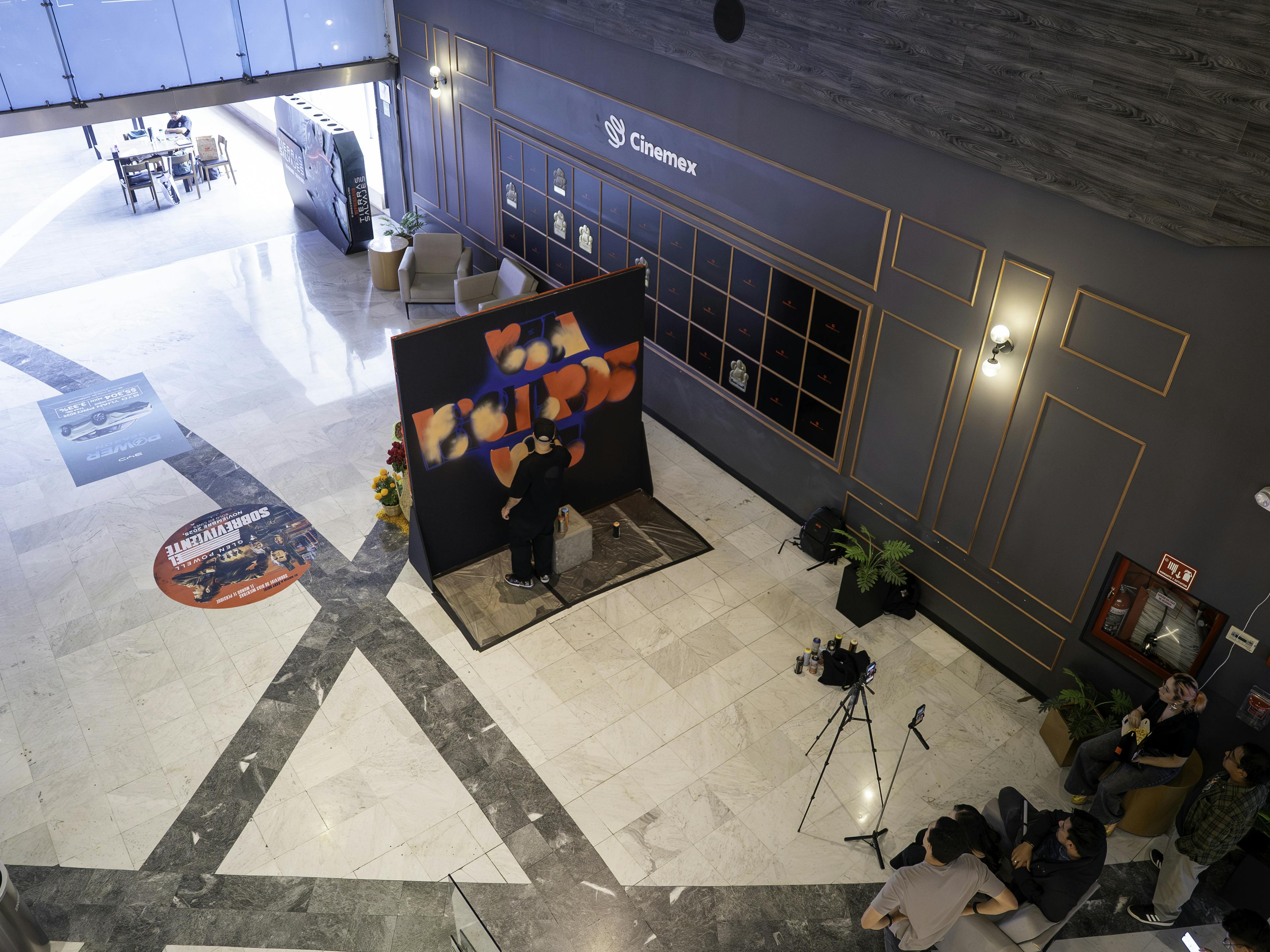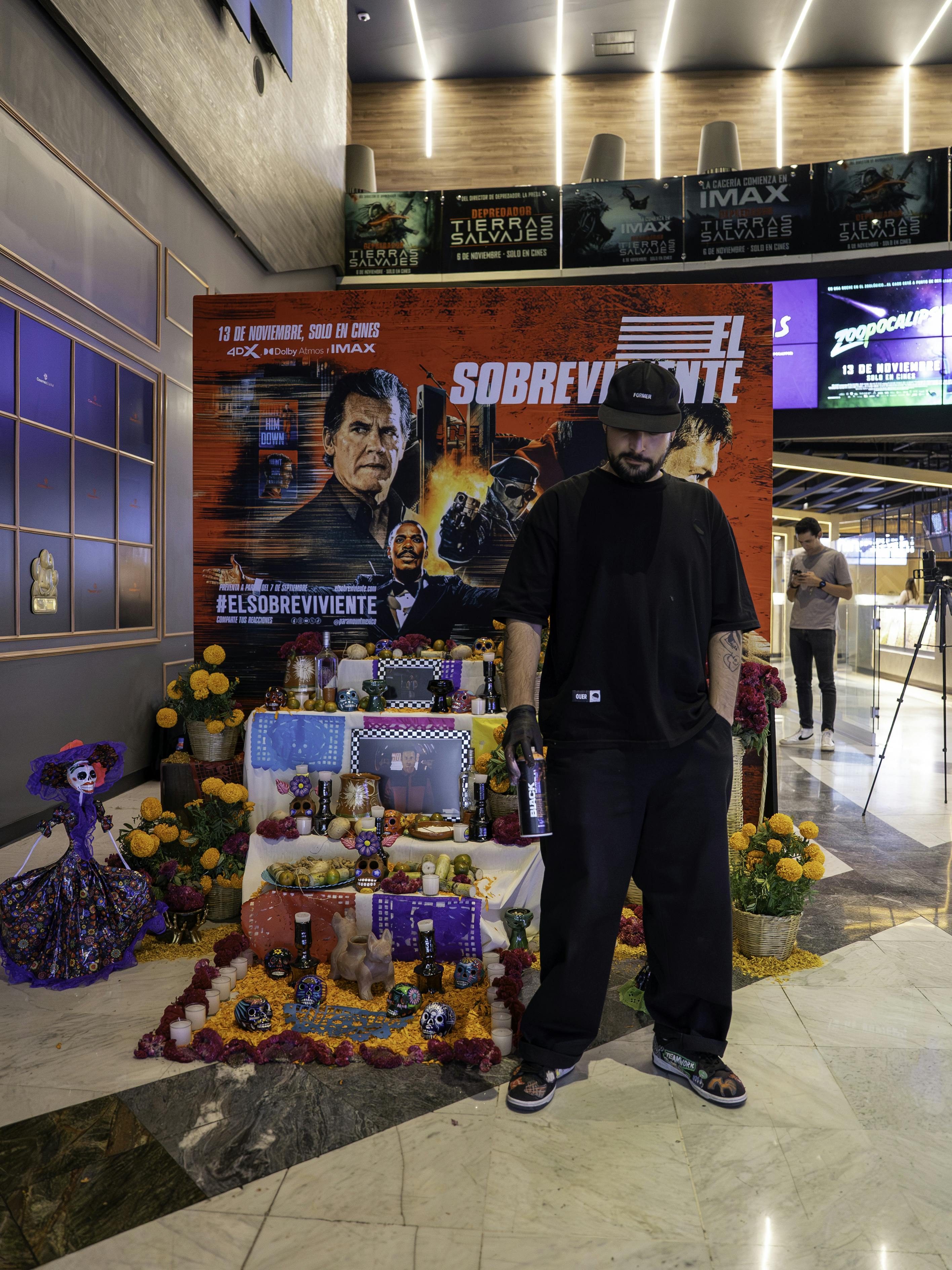 Con Paramount Pictures intervenimos el Día de Muertos en Cinemex Antara con una ofrenda dedicada a Ben Richards, protagonista de Running Man, mientras el artista Ouer realizaba un graffiti en tiempo real. La acción se desarrolló como una colaboración performativa en Instagram entre el artista y la cuenta oficial de Paramount México, despertando curiosidad sobre lo que estaba ocurriendo.